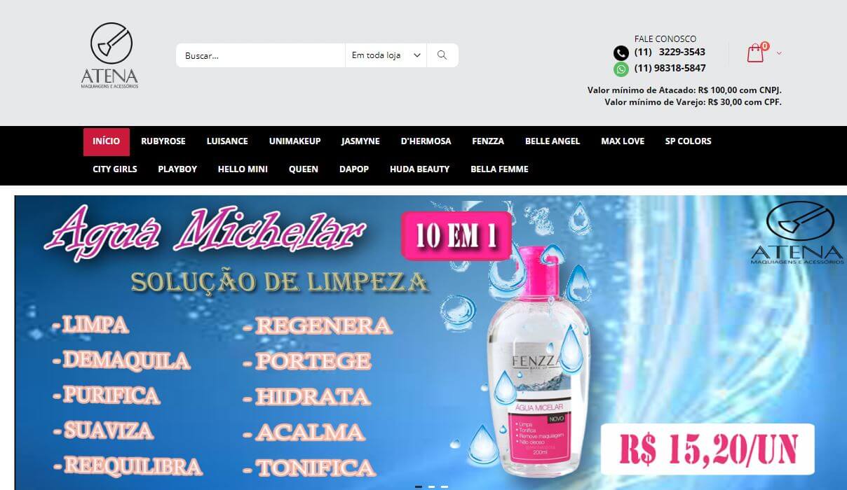 Site de cosméticos no atacado da Atena Maquiagens e Acessórios: qualidade e o melhor atendimento online